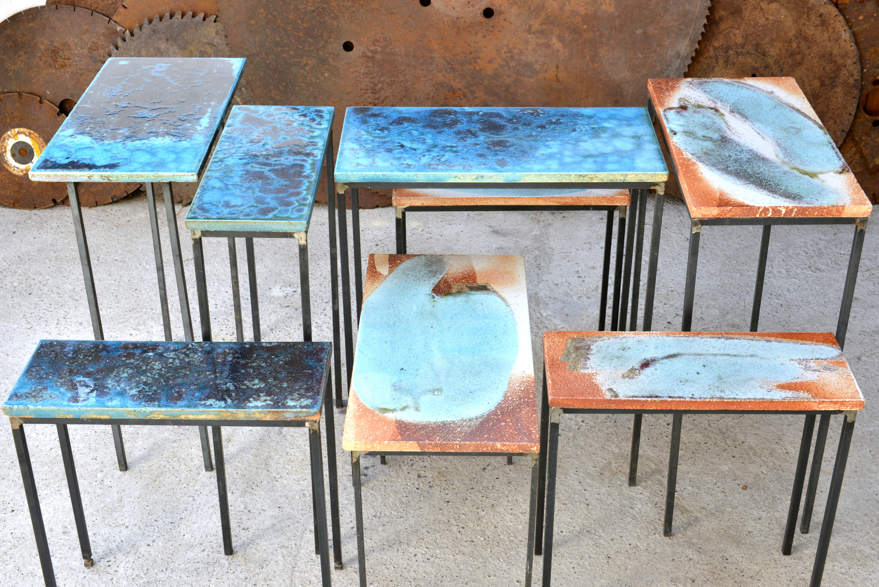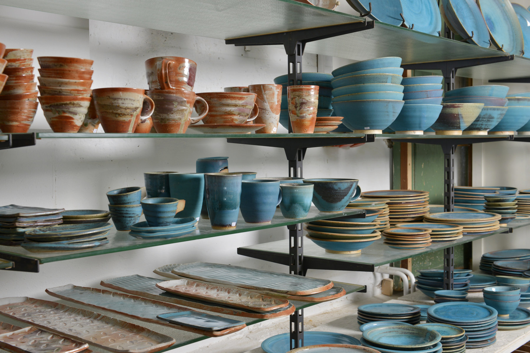 Neuste Serien sind Trinkschalen, Tassen, Teller, Schalen und Teekannen in einer orangebraunen bis schneeweißen Farbgebung (Shinoglasur), dekoriert mit geschlämmter Holzasche und einer Kupferglasur (Ochsenblut).